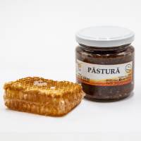 Bee bread is a mixture of pollen and nectar or honey, fermentated by the bees. This substance is the main source of food for honey bee workers and larvae. Bee bread represents an indispensable addition to daily diet, abundant in high-quality proteins, all essential amino acids, carbohydrates, fatty acids, B vitamins, vitamins K, E, D, C, especially in vitamin P (Rutin), provitamin A (Carotene), various minerals and oligoelements (especially potassium and iron), essential oils, enzymes, pigments and other biologically active natural substances.